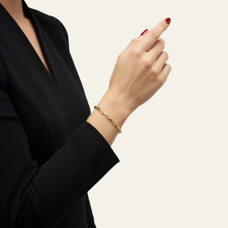 Günlük hayatın koşturmacasında stilinden ödün vermek istemeyenler için tasarlanan bu bileklik, seninle birlikte yaşayan bir parça gibi hissettirir. Sabah evden çıkarken bileğinde taşıdığın o hafif altın dokunuş, gün boyunca sana eşlik eder; toplantılarda özgüvenini, sokakta yürürken zarafetini, akşam bir davette ise doğal şıklığını tamamlar. Abartıya kaçmadan fark edilmek, sade görünürken güçlü bir iz bırakmak isteyen herkes için ideal bir tamamlayıcıdır.