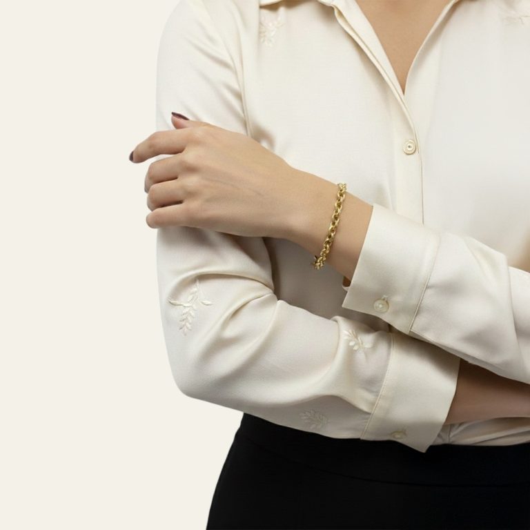 Bu zincir bileklik, bileğine her taktığında altının sıcaklığını ve dengeli ağırlığını hissettiren, zamanla seninle özdeşleşen bir parça olarak tasarlandı. Oval halkalardan oluşan zincir formu, ışığı hareket ettikçe yumuşak bir şekilde yansıtır; bu sayede dikkat çekmeye çalışmadan fark edilir bir şıklık sunar. 14 ayar saf altından üretilmiş olması, yalnızca estetik bir görünüm değil aynı zamanda uzun yıllar değerini koruyan güvenli bir kullanım sağlar. Sarı altının klasik tonu, modaya bağlı kalmadan her dönem stiline uyum sağlar; bugün sade bir kombinle, yıllar sonra farklı bir tarzla aynı rahatlıkla kullanılabilir. Bileğinde duruşu ne ağır ne de siliktir; 4.05 gramlık ideal gramajı sayesinde gün boyu konforlu bir his verirken varlığını net bir şekilde hissettirir. Zincirin her halkası özenle işlenmiş, pürüzsüz yüzeyiyle dokunduğunda kalite algısını hemen yansıtır. Istakoz kilit detayı, bilekliği tek hamlede takıp çıkarmanı sağlarken gün içinde güvenle kullanmana imkân tanır; bu da onu günlük hayatın doğal bir parçası hâline getirir. Tek başına kullanıldığında minimal ve temiz bir stil sunar, diğer bilekliklerle birlikte kullanıldığında ise zincir yapısı sayesinde uyumlu ve dengeli bir görünüm oluşturur. Ofiste sakin bir şıklık, günlük hayatta zahmetsiz bir tamamlayıcılık, özel anlarda ise altının kendine özgü parıltısıyla güçlü bir duruş sağlar. Roven’in kalite anlayışı, bu bileklikte sade tasarımı kusursuz işçilikle buluşturur; detaylara gösterilen özen ve kullanılan malzemenin güvenilirliği, onu yalnızca bir aksesuar değil uzun yıllar eşlik edecek bir stil parçası hâline getirir. Roven tasarladı, sen tarzladın. -