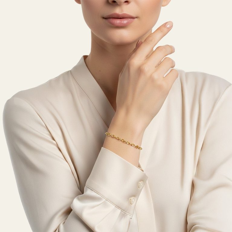 Gerçek altının zamansız şıklığını günlük stiline taşımak isteyen kadınlar için tasarlanan bu bileklik; sade ama etkileyici bir görünüm arayan, takısında yalnızca estetik değil aynı zamanda kalıcı bir değer görmek isteyenler için güçlü bir seçenektir. Bileğinde gün boyu doğal bir uyum sağlar, kombinlerine zahmetsiz bir zarafet ve kendinden emin bir duruş katar. Altının sıcak ışıltısı teninle buluştuğunda hem şıklığı hem de gerçek değeri hissettirir.• Malzeme: %100 saf 14 ayar altın – Gerçek altın yapısı sayesinde değerini korur, kararma yapmaz ve uzun yıllar güvenle kullanılabilir.• Ağırlık: 3.78 gr – Hafif ve dengeli gramajı ile bilekte zarif bir duruş sunar, gün boyu konfor sağlar.• Tasarım: Klasik zincir form – Zamansız çizgileri sayesinde modası geçmez, her stile kolayca uyum sağlar.• Renk: Doğal altın tonu – Her ten rengiyle uyumlu, parlak ve sıcak bir görünüm sunar.• Kullanım Şekli: Günlük ve özel günler – Tek başına sade bir şıklık sunar, farklı bilekliklerle birlikte kullanıldığında stilini güçlendirir. Roven, takıyı geçici trendlerin ötesinde, yıllar boyunca taşınacak kalıcı bir stil parçası olarak tasarlar; ustalıkla işlenen saf altın, sade ve dengeli tasarım anlayışıyla birleşir ve ortaya zamansız bir zarafet çıkar. Roven tasarladı, sen tarzladın. Ürün 14 ayar altın damgalıdır ve ayar ile gram bilgilerini içeren sertifikasıyla birlikte gönderilir, sevkiyat öncesi kalite kontrolünden geçirilir, sigortalı ve özenli paketleme ile hızlı kargo yapılır ve yasal süreler kapsamında iade ile değişim imkânı sunulur. Bu bileklik, günün temposunda da özel anlarında da sana eşlik eder; bileğinde hissettirdiği hafif ama değerli dokunuş, yalnızca altının değil kendine verdiğin değerin de sessiz bir ifadesi olur.