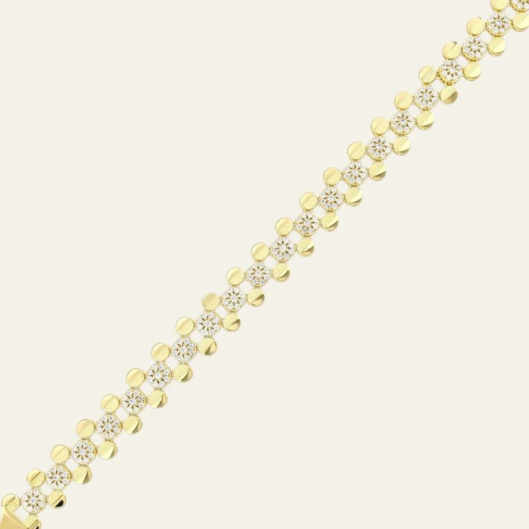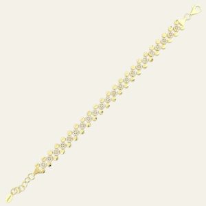 Zarif ve dikkat çekici tasarımıyla öne çıkan bu bileklik, çiçek motiflerinden ilham alan detaylarıyla altın şıklığını estetik bir formda sunar. Bilek boyunca sıralanan çiçek formundaki altın parçalar tasarıma hareket ve zarafet kazandırırken, aralarında yer alan parlak taş detayları bileğinizde ışıltılı ve canlı bir görünüm oluşturur. Altının sıcak sarı tonu ile birleşen bu çiçek motifleri, ışığı farklı açılardan yansıtarak bileğinizde göz alıcı ama dengeli bir parıltı yaratır. Akıcı ve dengeli tasarımı sayesinde bileğe rahatça uyum sağlar ve gün boyu konforlu bir kullanım hissi sunar. Günlük kombinlere zarif ve enerjik bir dokunuş katarken, özel günlerde de stilinizi tamamlayan şık bir detay haline gelir. 11.79 gramlık dengeli yapısı sayesinde hem güçlü hem de estetik bir duruş sunan bu tasarım, doğadan ilham alan modern çizgilerle zamansız altın zarafetini bir araya getirir. Bu bileklik yalnızca bir aksesuar değil; zarafeti, ışıltıyı ve modern stil anlayışını bileğinizde taşıyan özel bir mücevher parçasıdır.