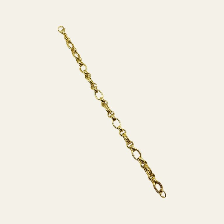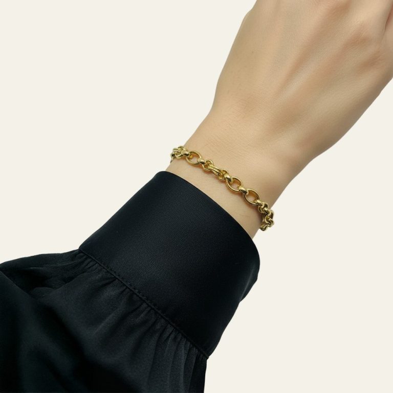 Gerçek altının zamansız şıklığını stiline taşımak isteyen kadınlar için tasarlanan bu bileklik, hem günlük kullanımda hem de özel anlarda seni yormadan tamamlayan bir zarafet sunar. Seninle birlikte günün temposuna uyum sağlar; sade ama güçlü duruşuyla kombinlerine doğal bir ışıltı ve kendinden emin bir ifade katar. Takısında geçici bir aksesuar değil, kalıcı bir değer arıyorsan tam da bu noktada hayatına girer.• Malzeme: %100 saf 14 ayar altın – Gerçek altın yapısı sayesinde kararma yapmaz, uzun yıllar değerini ve parlaklığını korur.• Ağırlık: 6.54 gr – Dolgun ve tok gramajı ile bilekte kaliteli bir duruş sunar, güven veren bir his oluşturur.• Tasarım: Oval halkalı zincir form – Modern ve zamansız çizgileriyle her stile kolayca uyum sağlar.• Renk: Doğal altın sarısı – Her ten rengiyle uyumlu, sıcak ve parlak bir görünüm sunar.• Uzunluk: 19 cm – Kadın bileği için ideal ölçü, bilekte dengeli ve zarif bir duruş sağlar.• Kullanım Şekli: Günlük ve özel günler – Tek başına güçlü bir şıklık sunar, farklı bilekliklerle kombinlendiğinde stilini öne çıkarır. Roven, takıyı kısa ömürlü trendlerin ötesinde, yıllarca keyifle taşınacak bir stil parçası olarak tasarlar; ustalıkla işlenen saf altın, yalın ama güçlü tasarım anlayışıyla birleşir. Roven tasarladı, sen tarzladın. Ürün 14 ayar altın damgalıdır ve ayar ile gram bilgilerini içeren sertifikasıyla birlikte gönderilir, sevkiyat öncesi kalite kontrolünden geçirilir, sigortalı ve özenli paketleme ile hızlı kargo yapılır ve yasal süreler kapsamında iade ile değişim imkânı sunulur. Bu bileklik, sabah günlük koşturmanda da özel bir akşamda da sana eşlik eder; bileğinde hissettirdiği değer, yalnızca altının değil kendine verdiğin önemin de sessiz bir yansıması olur.