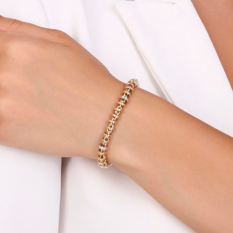 Kategori: Altın Bileklik | Marka: Roven | Model: Modern Zincir | Ağırlık: 8.72 Gram | Renk: Sarı Altın | Detay: Taşlı Beyaz Altın Vurgular | Stil: Modern & Işıltılı | Kullanım: Günlük & Özel Gün | Hedef Kitle: Kadın | Üretim: Özenli İşçilik | Paketleme: Güvenli Gönderim