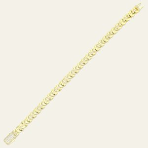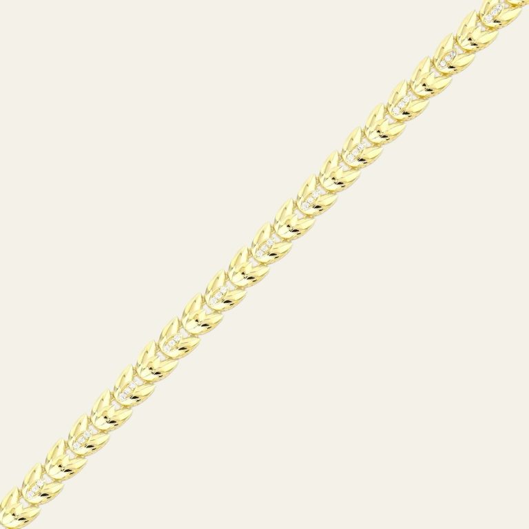 Zamansız tasarımı ve güçlü duruşuyla öne çıkan bu bileklik, klasik gurmet zincir formunu modern bir zarafetle bir araya getirir. Birbirine sık ve düzenli şekilde bağlanan gurmet zincir halkaları bilekte akıcı ve dengeli bir görünüm oluştururken, parlak yüzeyli altın form ışığı farklı açılardan yansıtarak bileğinizde canlı ve dikkat çekici bir ışıltı yaratır. Altının sıcak sarı tonu ile birleşen bu klasik tasarım, sade kombinlere güçlü ve şık bir dokunuş katarken daha özenli stillerde de stilinizi tamamlayan zamansız bir detay haline gelir. Dengeli ve akıcı yapısı bileğe rahatça uyum sağlar ve gün boyu konforlu bir kullanım sunar. 9.94 gramlık güçlü ve dengeli yapısı sayesinde bilekte hem estetik hem de dikkat çekici bir duruş sağlayan bu tasarım, klasik altın şıklığını modern stil anlayışıyla bir araya getirir. Bu bileklik yalnızca bir aksesuar değil; zamansız şıklığı, güçlü stil anlayışını ve altının doğal ışıltısını bileğinizde taşıyan özel bir mücevher parçasıdır. -