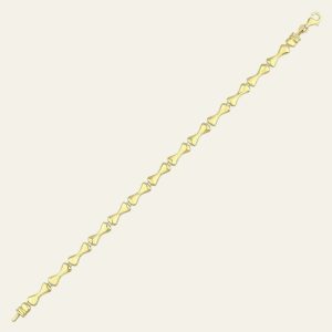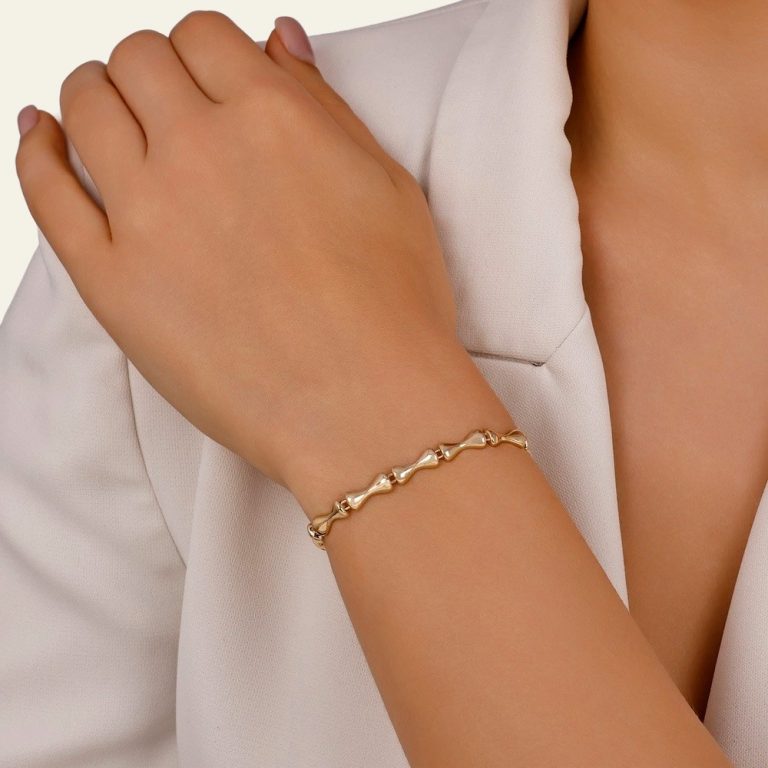 Zarif ve romantik tasarımıyla öne çıkan bu bileklik, kalp formundaki özel detayları minimal bir zincir yapısıyla bir araya getirerek bileğinizde estetik ve dikkat çekici bir görünüm oluşturur. Bilek boyunca sıralanan küçük kalp formları tasarıma ritmik ve akıcı bir hareket kazandırırken, parlak yüzeyli altın form ışığı farklı açılardan yansıtarak bileğinizde zarif ve canlı bir ışıltı oluşturur. Altının sıcak sarı tonu ile birleşen bu romantik tasarım, sade kombinlere zarif ve anlamlı bir dokunuş katarken daha özenli stillerde de stilinizi tamamlayan şık bir detay haline gelir. İnce ve dengeli yapısı bileğe rahatça uyum sağlar ve gün boyu konforlu bir kullanım sunar. 5.90 gramlık dengeli yapısı sayesinde hem estetik hem de zarif bir duruş sağlayan bu tasarım, minimal çizgilerle romantik altın zarafetini bir araya getirir. Bu bileklik yalnızca bir aksesuar değil; zarafeti, romantik detayları ve modern stil anlayışını bileğinizde taşıyan özel bir mücevher parçasıdır.