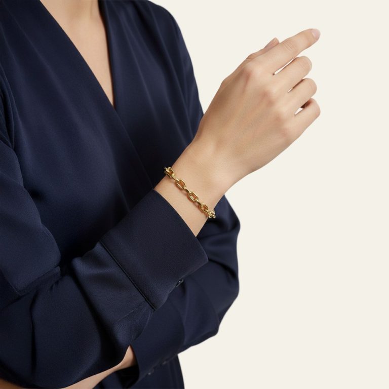 Gerçek altının zamansız şıklığını stiline taşımak isteyen kadınlar için tasarlanan bu bileklik, günlük hayatında hem zarif hem de güçlü bir tamamlayıcı arayanlar için ideal bir tercihtir. Seninle birlikte gün boyu konforla hareket eder, sade ama etkileyici duruşuyla kombinlerine doğal bir ışıltı ve özgüven katar. Takında geçici bir trend değil, uzun yıllar değerini koruyacak kalıcı bir parça arıyorsan bu bileklik tam sana göre.• Malzeme: %100 saf 14 ayar altın – Gerçek altın yapısı sayesinde kararma yapmaz, uzun süre parlaklığını ve değerini korur.• Ağırlık: 4.34 gr – Dengeli gramajı ile bilekte hafif ama kaliteli bir his sunar, gün boyu rahat kullanım sağlar.• Tasarım: Oval halkalı zincir form – Zamansız ve modern çizgileri sayesinde her stile kolayca uyum sağlar.• Renk: Doğal altın sarısı – Her ten rengiyle uyumlu, sıcak ve parlak bir görünüm sunar.• Uzunluk: 19 cm – Kadın bileği için ideal ölçü, bilekte dengeli ve zarif bir duruş sağlar.• Kullanım Şekli: Günlük ve özel günler – Tek başına sade bir şıklık sunar, farklı bilekliklerle birlikte kullanıldığında stilini güçlendirir.Roven, takıyı yalnızca bir aksesuar olarak değil, yıllar boyunca keyifle taşınacak kalıcı bir stil parçası olarak tasarlar. Ustalıkla işlenen saf altın, yalın ama güçlü tasarım anlayışıyla birleşir. Roven tasarladı, sen tarzladın.Ürün 14 ayar altın damgalıdır ve ayar ile gram bilgilerini içeren sertifikasıyla birlikte gönderilir. Sevkiyat öncesi kalite kontrolünden geçirilir, sigortalı ve özenli paketleme ile hızlı kargo yapılır. Yasal süreler kapsamında iade ve değişim imkânı sunulur.Bu bileklik, günün temposunda da özel anlarında da sana eşlik eder; bileğinde hissettirdiği değer, yalnızca altının değil kendine verdiğin önemin de sessiz bir yansıması olur. Zamansız bir şıklığı bugün stiline ekle.