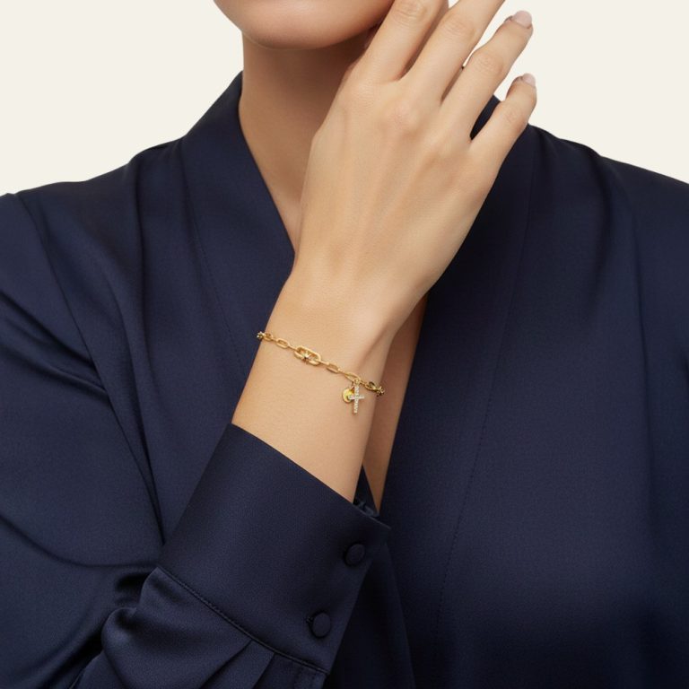 Gerçek altının zamansız şıklığını günlük stiline taşımak isteyen kadınlar için tasarlandı. Bu bileklik, sade ama karakterli duruşuyla seninle birlikte günün ritmine uyum sağlar; sabahın ilk ışıklarından gecenin sakin anlarına kadar stilinin doğal bir parçası olur. Bileğinde hissettirdiği hafiflik, yalnızca konfor değil aynı zamanda kendine verdiğin değerin de bir yansımasıdır. Parlak altın tonu ışıkla buluştuğunda zarif bir ışıltı yaratır, yıldız detayları ise abartıdan uzak ama dikkat çekici bir stil ifadesi sunar. Günlük kombinlerine zahmetsiz bir şıklık katar, özel anlarda ise sadeliğiyle öne çıkar. Zamansız tasarımı sayesinde modası geçmez, yıllar boyunca stiline eşlik eder.