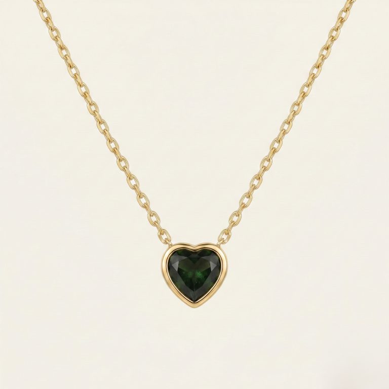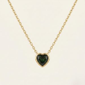 14 Ayar Altın Yeşil Taşlı Kalp Kolye
