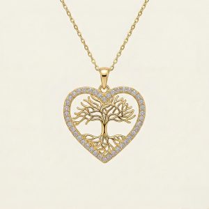 14 Ayar Altın Hayat Ağacı Kalp Kolye