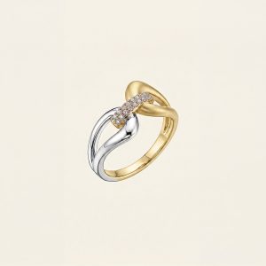 Roven İki Renkli Düğüm Detaylı Altın Yüzük