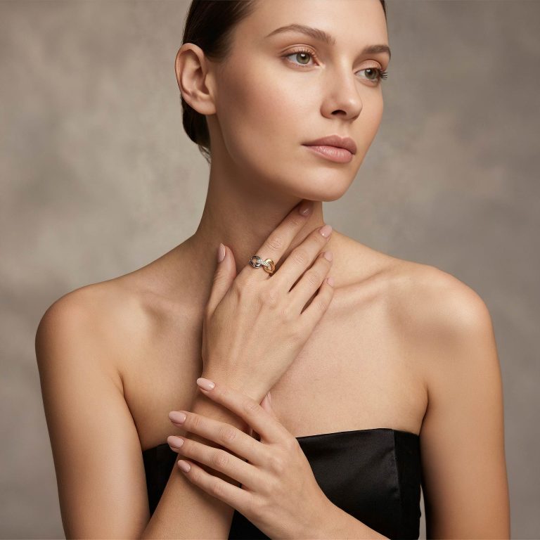 Zarif ve anlam yüklü tasarımıyla öne çıkan bu yüzük, sarı ve beyaz altının kusursuz uyumunu düğüm formuyla bir araya getirerek stilinize modern ve güçlü bir dokunuş kazandırır. Akıcı formda birbirine dolanan altın yüzeyler, tasarıma hareket ve derinlik katarken düğüm detayı bağlılık, birlik ve sonsuzluğu simgeleyen güçlü bir anlam taşır. Üst bölümde yer alan ışıltılı taş dizilimi, ışığı farklı açılardan yansıtarak parmağınızda zarif ve dikkat çekici bir parıltı oluşturur. Sarı altının sıcak tonu ile beyaz altının modern parlaklığı birleşerek sade kombinlere sofistike bir şıklık katarken daha özel anlarda da stilinizi tamamlayan etkileyici bir parça haline gelir. Dengeli ve konforlu yapısı sayesinde parmakta rahat bir kullanım sunar. 3.32 gramlık ideal ağırlığı ile hem hafif hem de dolgun bir duruş sağlayarak estetik ve konforu bir arada sunar. Bu yüzük yalnızca bir aksesuar değil; zarafeti, anlamı ve modern tasarım anlayışını bir araya getiren özel bir mücevher parçasıdır.